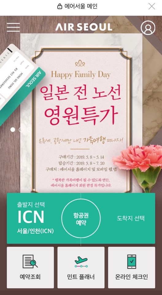 에어서울 항공사에서 가정의 달을 맞이한 특가이벤트를 내세웠습니다.