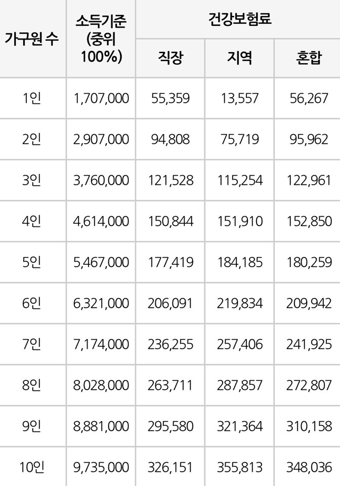 ˇ건강보험료는 노인장기요양보험료를 ‘제외’한 금액으로 기준