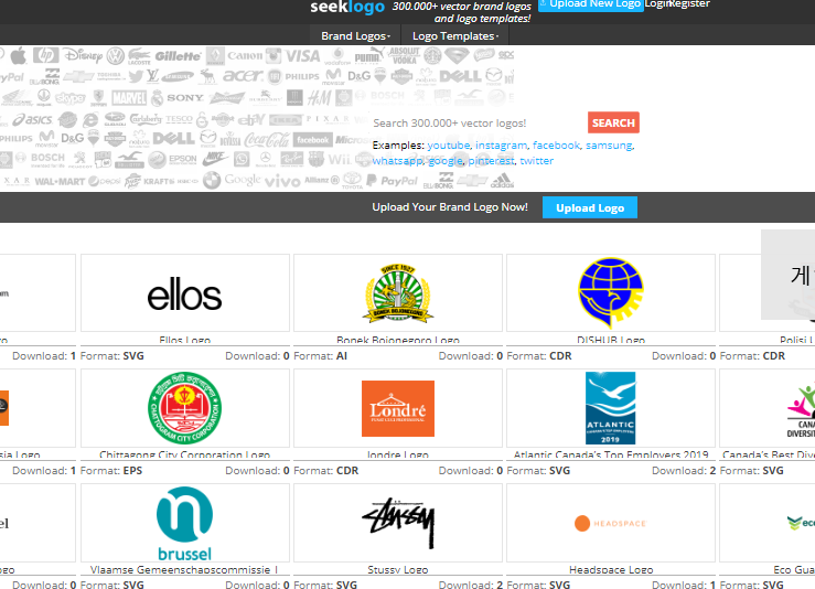카테고리별로 굉장히 다양하게 많이 나누어져 있는 로고들, 구성이 잘 되어있는 사이트입니다.