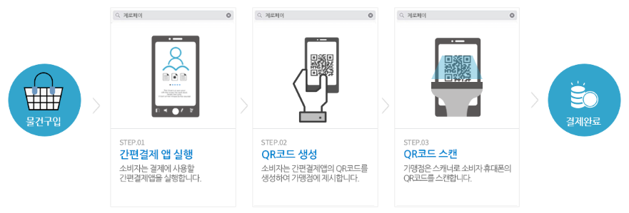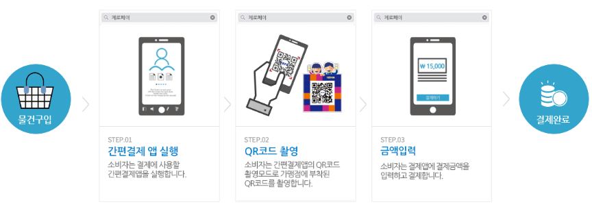 - 가맹점에 배치된 QR코드를 결제앱으로 촬영