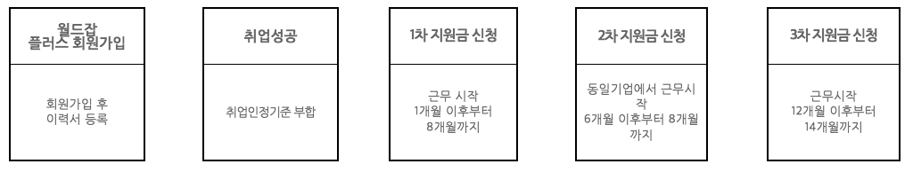 - 해외취업 성공 후, 취업 인정기준이 부합하면 지원금을 신청할 수 있어요.