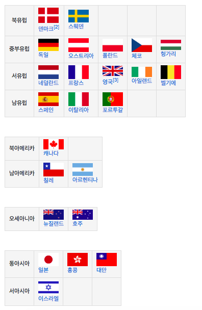 체류기간 및 허가되는 비자의 종류는 나라별로 약간씩 상이합니다.
