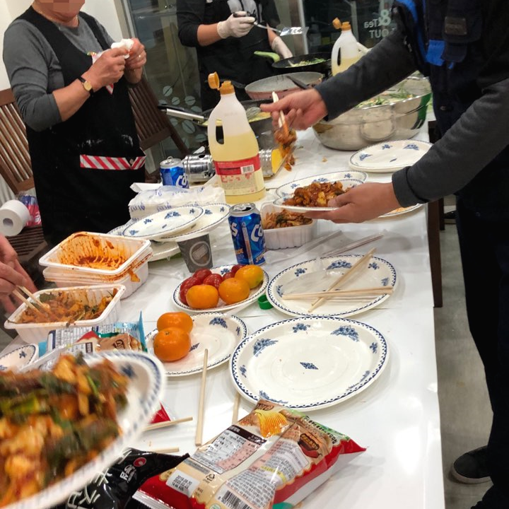 청년카페 앞에서부터 시끌벅적한 소리와 함께 음식 냄새가 바깥으로 흘러 나올만큼 맛있는 음식들이 준비되고 있었는데요.