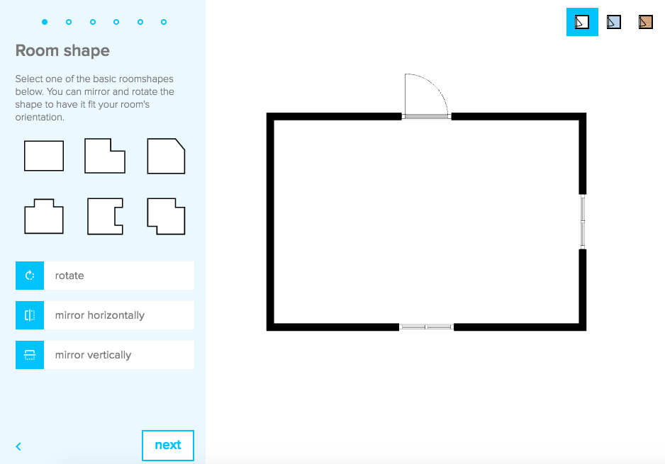 아래의 세가지 옵션을 이용해서 방의 방향에 맞게 도면을 미러링 및 회전할 수 있어요.
