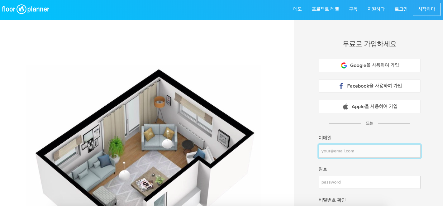 검색창에 플로어플래너(floorplanner)를 검색하시면 도면 제작이 가능한 웹사이트가 영어로 되어 나올텐데요.