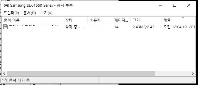 위 과정들을 마친 후 프린터 대기문서 목록을 확인해보면 아까 삭제중으로만 나타나있던 문서가 사라져 있는것을 확인할 수 있습니다.
