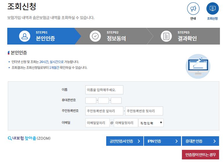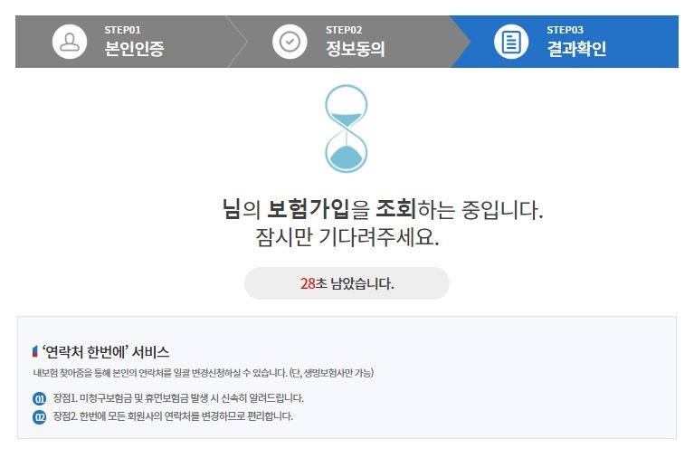 내보험 찾아줌 홈페이지(http://cont.insure.or.kr)