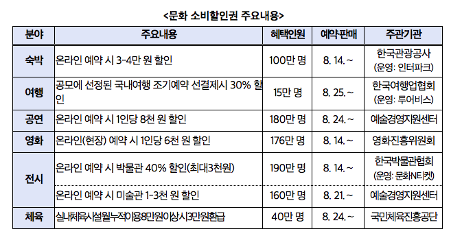 - 숙박·영화·전시(박물관): 8월 14일부터 ~ 할인권 소진 시까지