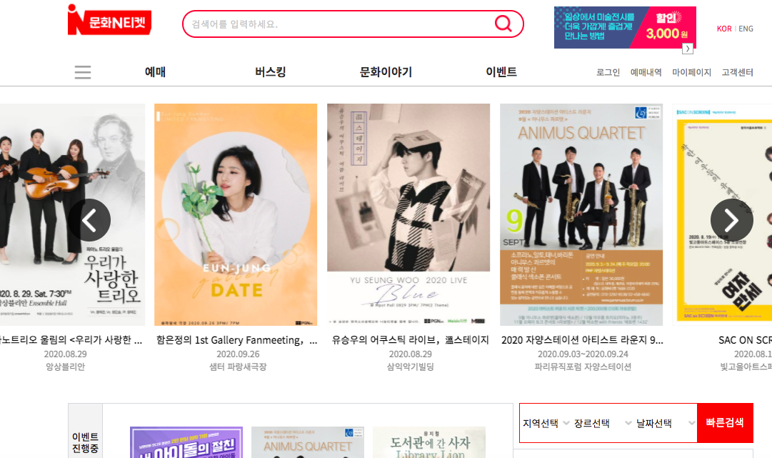 - 공연 티켓 온라인 예매처 누리집 사이트 접속