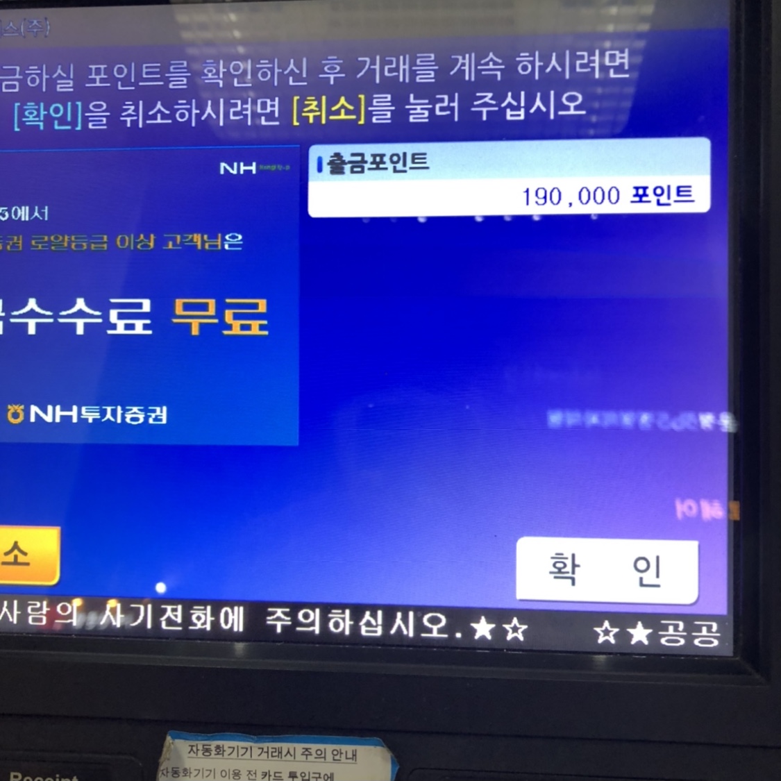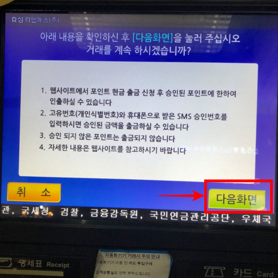 확인을 누르면 명세표와 함께 현금 수령 완료!