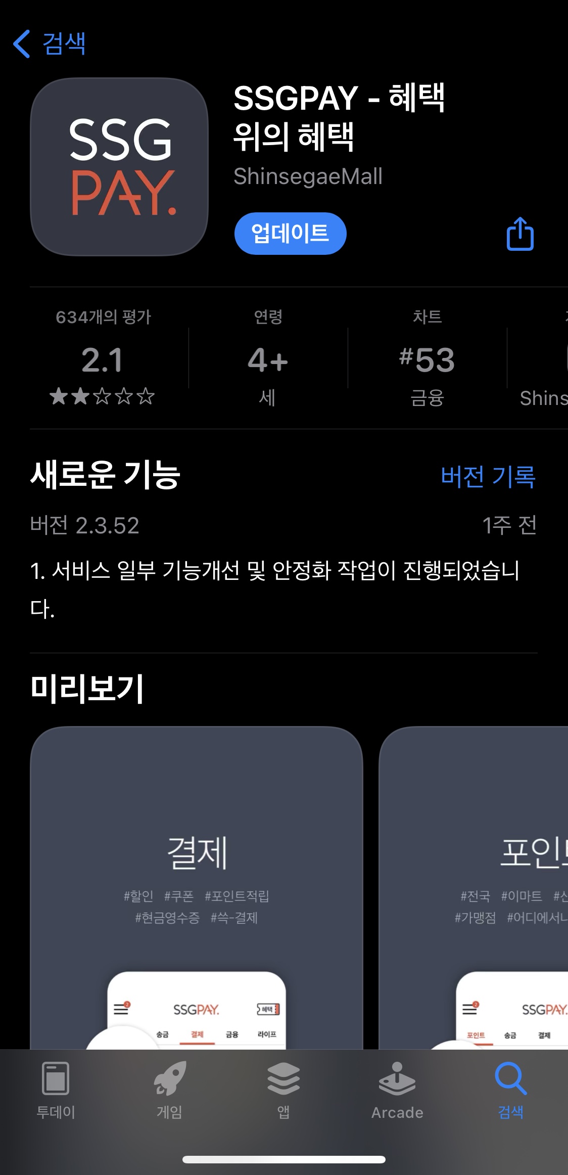 'SSG PAY' 앱을 설치한 뒤, 접속 한 후에