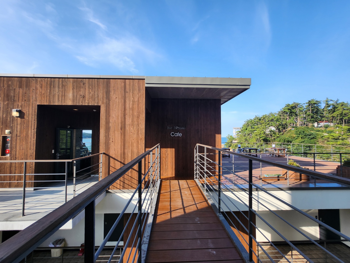 저희 일행이 있던 베이브리즈 호텔 건물은 아니고 호텔 동이 2개로 나뉘어져 있는 것 같은데 나무다리로 건너가면 카페로 들어갈 수 있어요