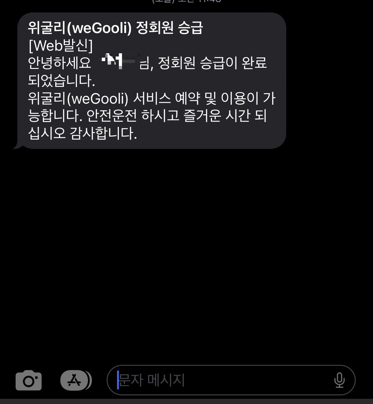 차량을 반납해야 하는 시간이 얼마 안 남은 시점에서 행복카 위굴리 앱에 등록된 연락처로 문자가 오기때문에 반납 시간을 놓칠 부담이 없어 괜찮은 것 같아요