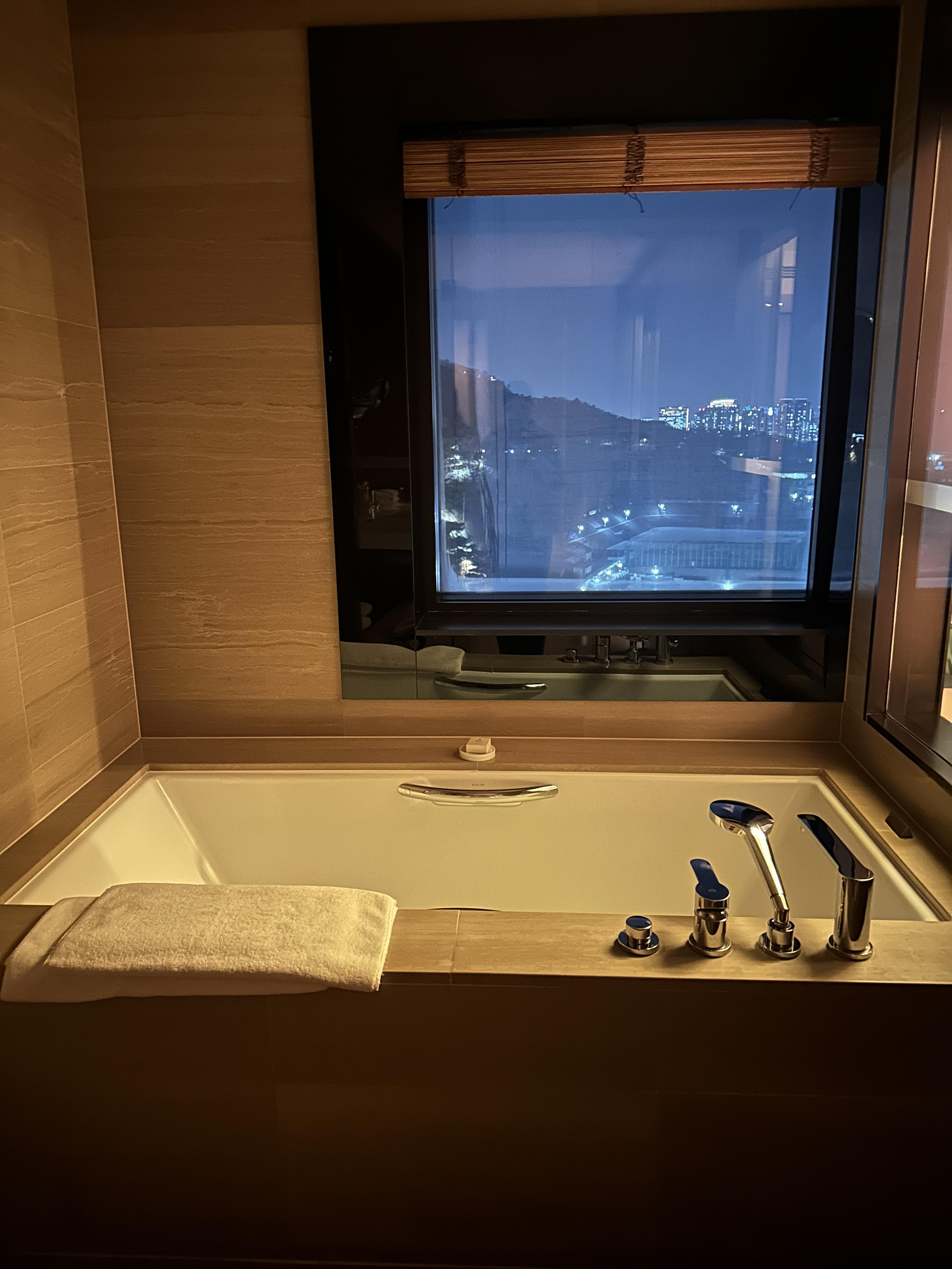 그리고 화장실에 큰 욕조와 바로 옆에는 유리창이 있는데 그 너머에 보이는 야경이 정말 예뻤어요