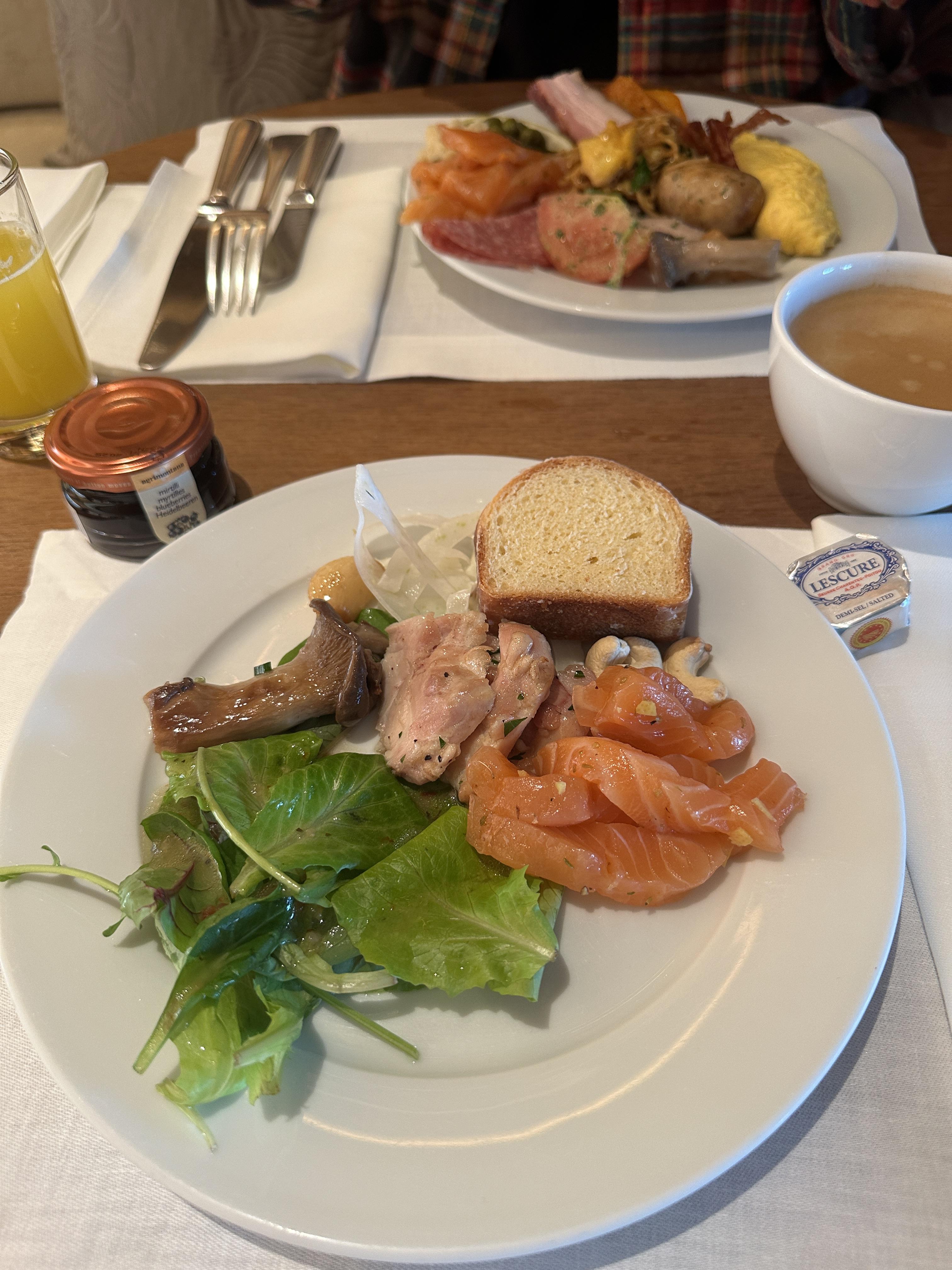 빵, 샐러드, 요거트, 연어 등 부담스럽지 않은 종류가 많이 있더라구요 ☺️ 특히 버터랑 잼 존맛 ㅜㅜ