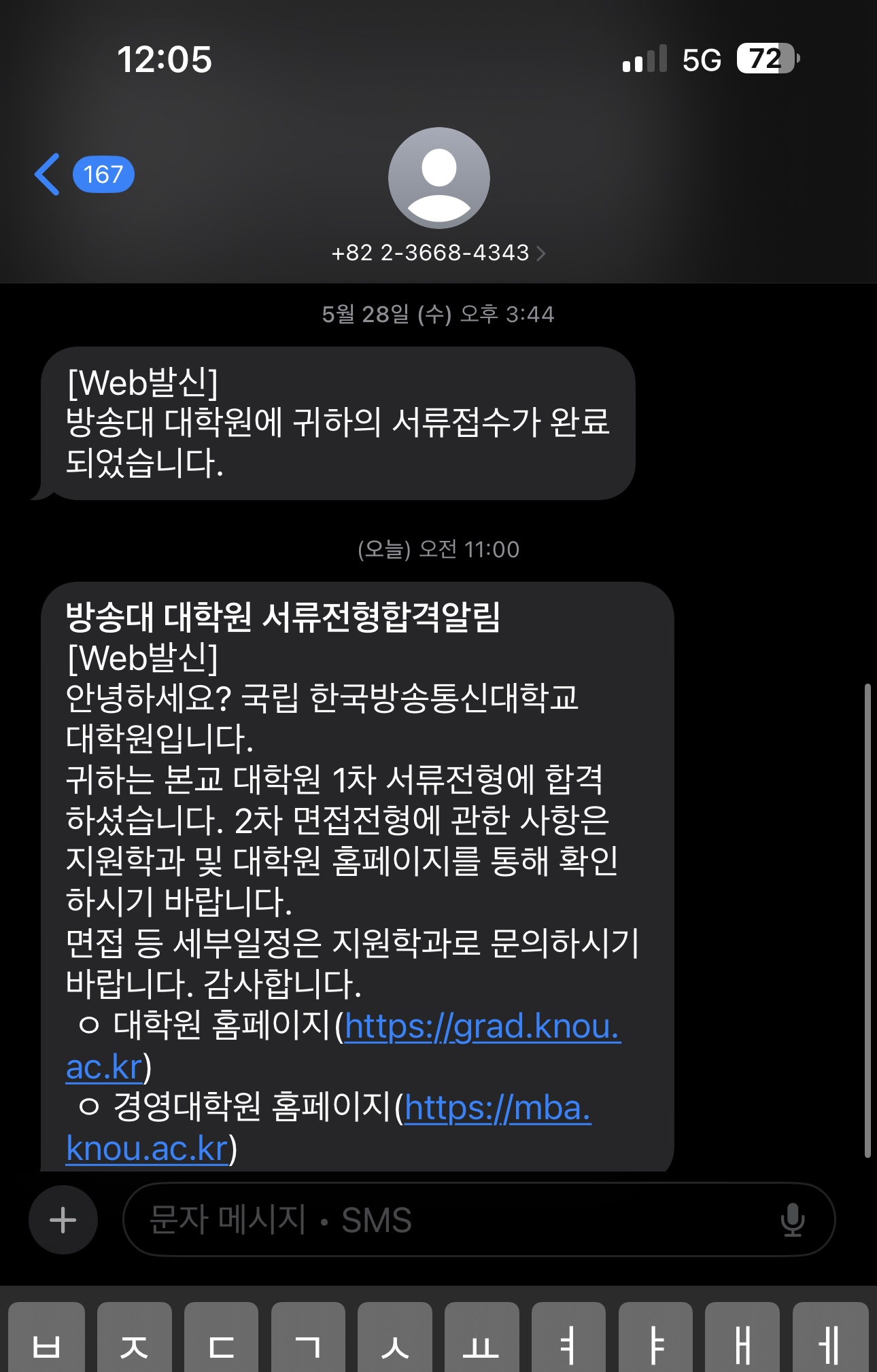 그렇게 입학 지원서를 열심히 작성하고 제출한 결과!