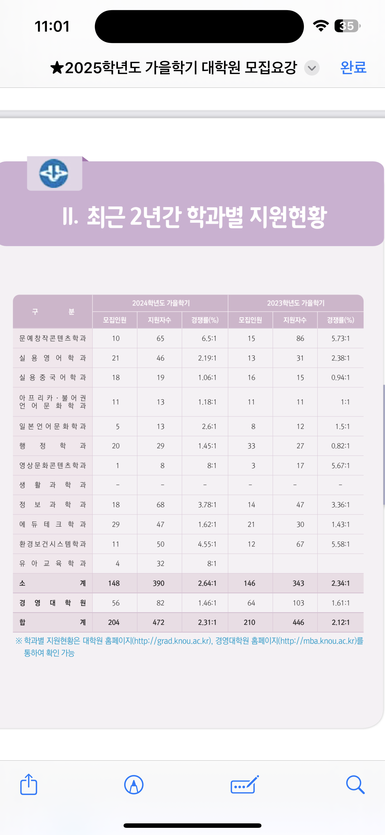 2023년 가을학기와 2024년 가을학기의 학과 경쟁률을 같이 봤을 때, 24년 경쟁률이 조금 높았지만 그래도 타과에 비해 높진 않아 다행인듯