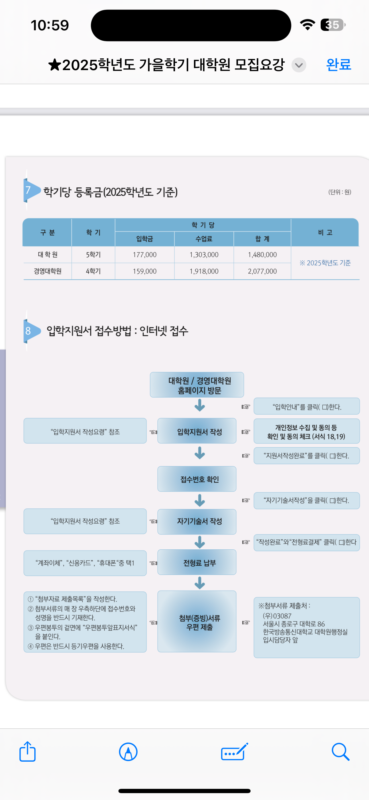 경영대학원이 수업료가 좀 더 높게 책정되어 있어서 총 납부 금액도 약 50만원 정도 차이가 있다.